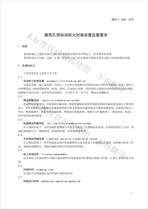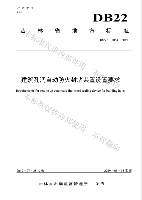 《建筑孔洞自動防火封堵裝置設(shè)置要求》地方標(biāo)準(zhǔn)已于2019.8.15頒布實施